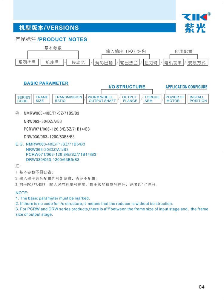 3.安装之前,应复核其输入功率、转速及输出轴扭矩与铭牌相符,并检查减速器输出轴的旋转方向,并与工作机一致。