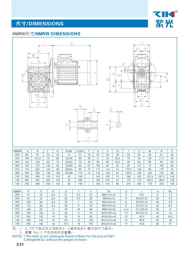 品牌:紫光 加工定制:是 类别:涡轮蜗杆减速机 型号:NMRW030 齿轮类型:圆柱齿轮减速机 安装形式:立式 布局形式:同轴式 齿面硬度:硬齿面 用途:减速机 输入转速:1400 rpm 额电功率:0.18 kw 使用范围:输送线使用 级数:单级 减速比:5-100 NMRW030紫光涡轮减速机结构特点: